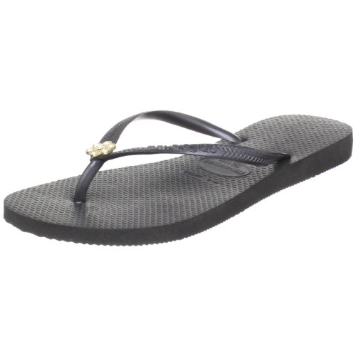We think your summer should be as carefree as a day at the beach--which is why we're smitten with this women's Slim Crystal Flower flip-flop by Havaianas. A simple and stylish foundation to your swim gear, sundresses, cutoffs and more, the rubber-soled sandal sports a sleek silhouette that perfectly showcases your golden tan and glossy toes. You're sure to love its flexible synthetic upper and thicker-than-usual rubber footbed, as well as the traction sole that keeps you traveling in cool, confident style.