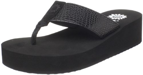 Step into comfort this summer with the Yellow Box Cali flip-flop sandal. A moc croc and fabric upper affixes to a thick rubber sole, perfect for shock-absorbing comfort and forming the ultimate barrier between your tender toes and the hot pavement. Thong styling means no straps -- and no fuss. Outfit yourself for a day at the beach leading to a night out on the town with a bathing suit, belted mini, and this chunky stylish flip-flop in your bag.Synthetic and fabric upper Fabric lining Rubber sole Heel measures approximately 1.75" Platform measures approximately 1"